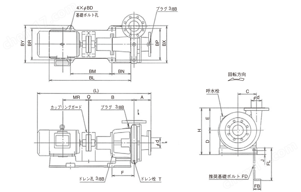 搭載了頂流單效率(相當(dāng)于IE3)電動(dòng)機(jī)的節(jié)能泵。(0.4kW機(jī)型除外)